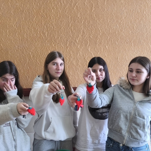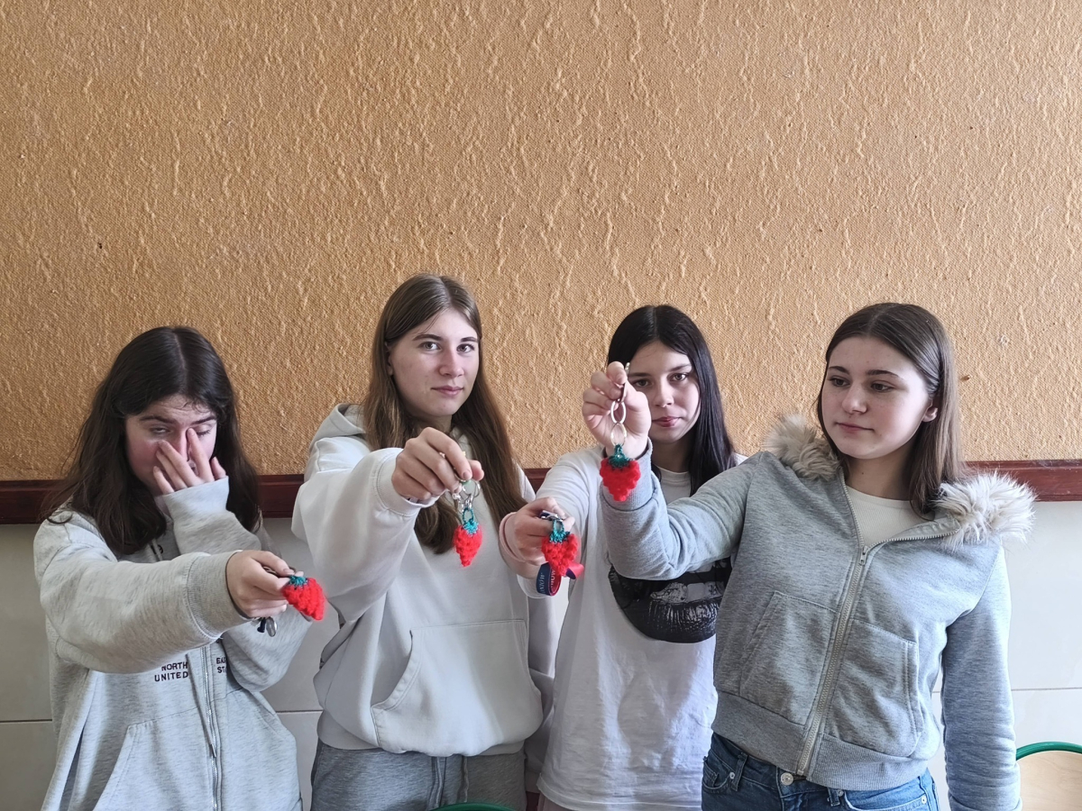 Uczniów spotkała miła niespodzianka - otrzymali pamiątkowe breloki wykonane z włóczki przez podopiecznych ŚDS.