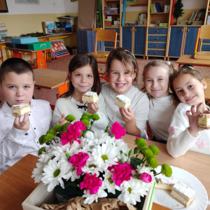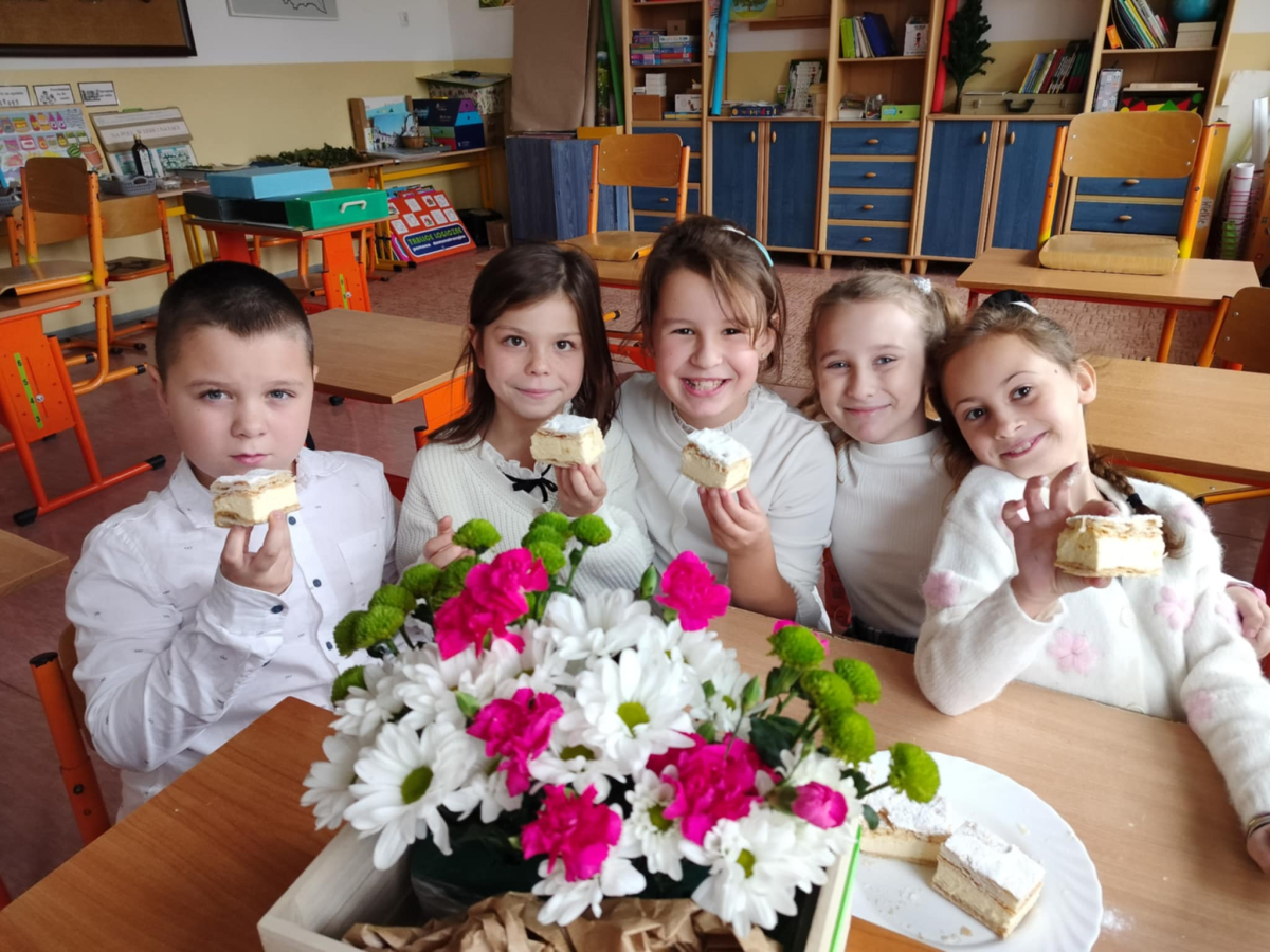 Święto Szkoły zakończyliśmy na słodko, oczywiście zjadając KREMÓWKI, mniam, mniam, za które serdecznie dziękujemy Radzie Rodziców.
