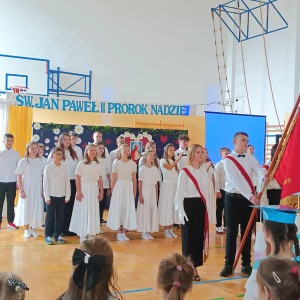 Następnie uczniowie klas V i VIII zaprezentowali akademię ukazującą wielkość