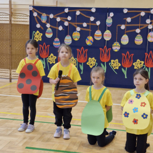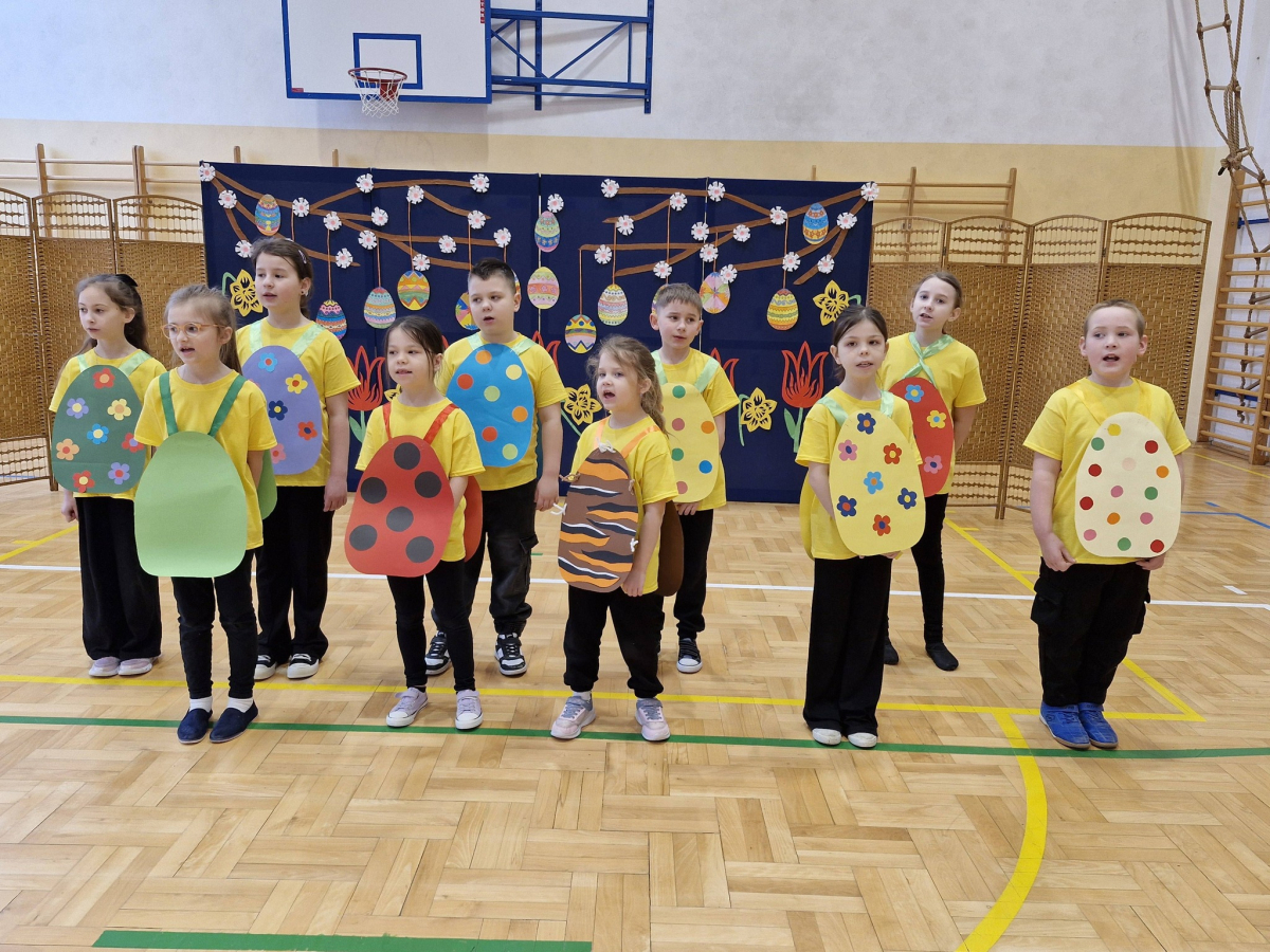 Dzieci wspaniale zaprezentowały tradycje związane ze Świętami Wielkanocnymi – nie zabrakło kolorowych strojów, radosnych piosenek i ciekawych scenek przybliżających nasze polskie zwyczaje.