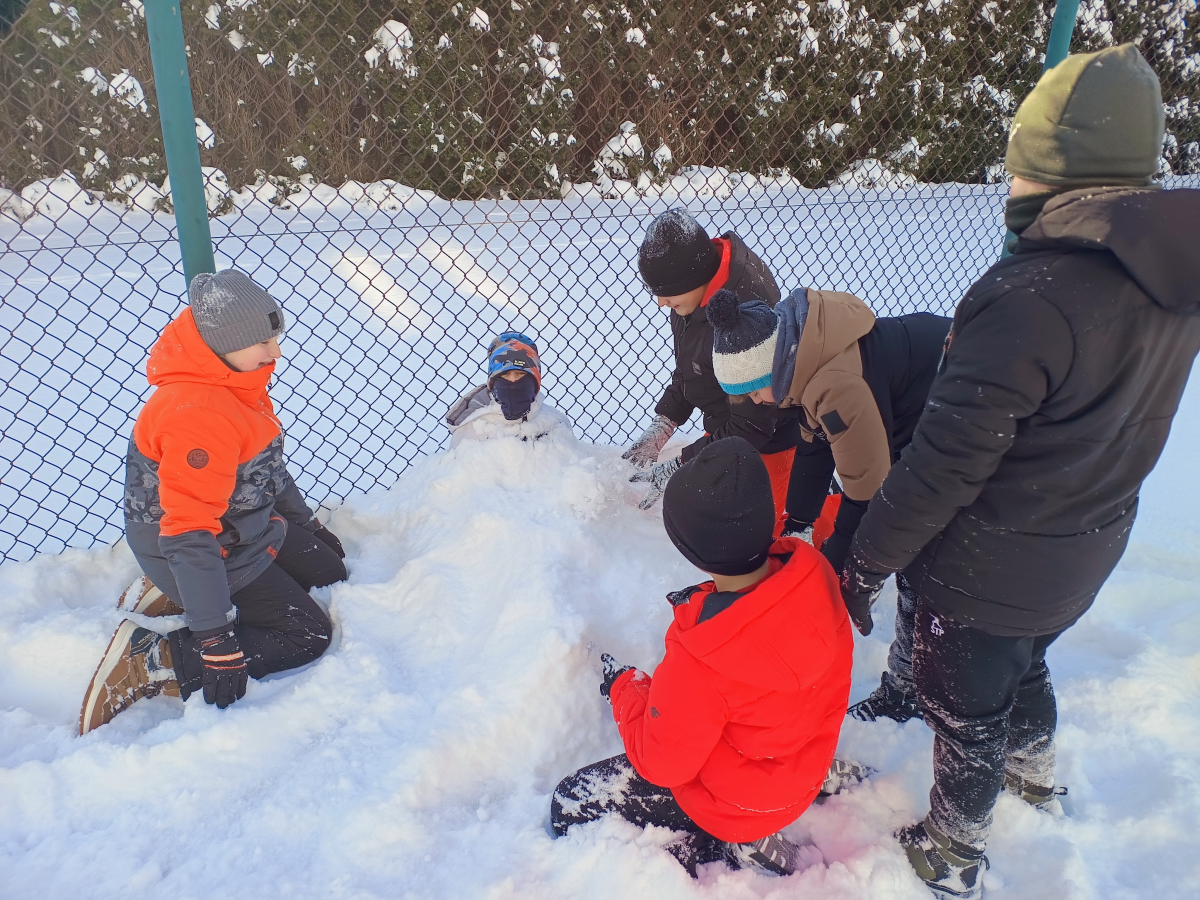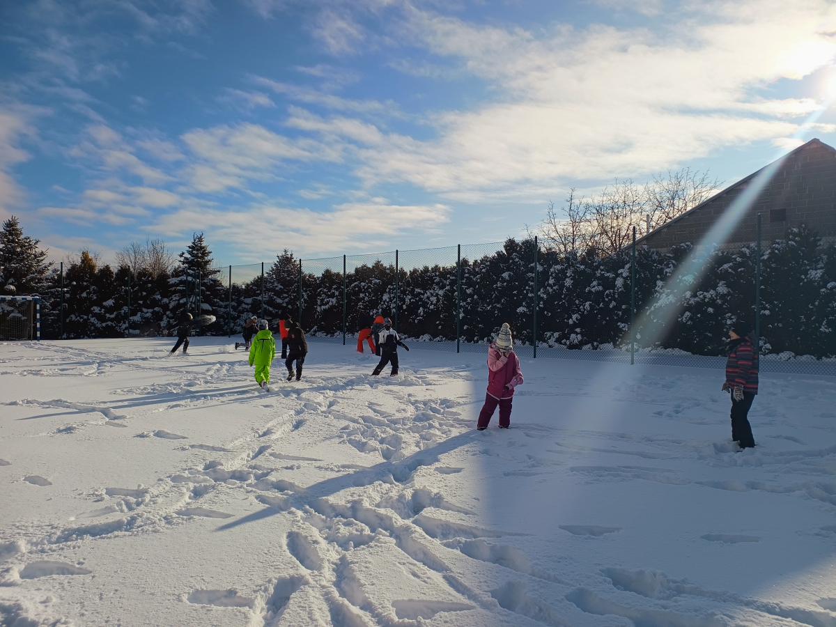 Relacja z dnia zabaw na śniegu Dzisiejszy dzień w naszej szkole upłynął pod znakiem radości, ruchu i zimowej atmosfery. Uczniowie klas od 4 do 8 mieli okazję spędzić czas na świeżym powietrzu, korzystając z uroków śnieżnej aury. Od samego początku dopisywały nam świetne humory. Dzieci chętnie brały udział w różnorodnych zabawach na śniegu – od wspólnych gier ruchowych, przez lepienie bałwanów, aż po bitwy na śnieżki, które wywoływały salwy śmiechu i pozytywną rywalizację. Nie zabrakło również spacerów i chwil na integrację między klasami. Aktywność na świeżym powietrzu była doskonałą okazją do oderwania się od szkolnych ławek, dotlenienia organizmu oraz budowania relacji w przyjaznej, swobodnej atmosferze. Uczniowie wykazali się dużym zaangażowaniem, energią i wzajemną życzliwością. Dzisiejsze zimowe zabawy na długo pozostaną w naszej pamięci jako dzień pełen uśmiechów, ruchu i dobrej zabawy. To był czas, który pokazał, jak wiele radości może dać wspólne spędzanie czasu na świeżym powietrzu – nawet w chłodny, zimowy dzień.