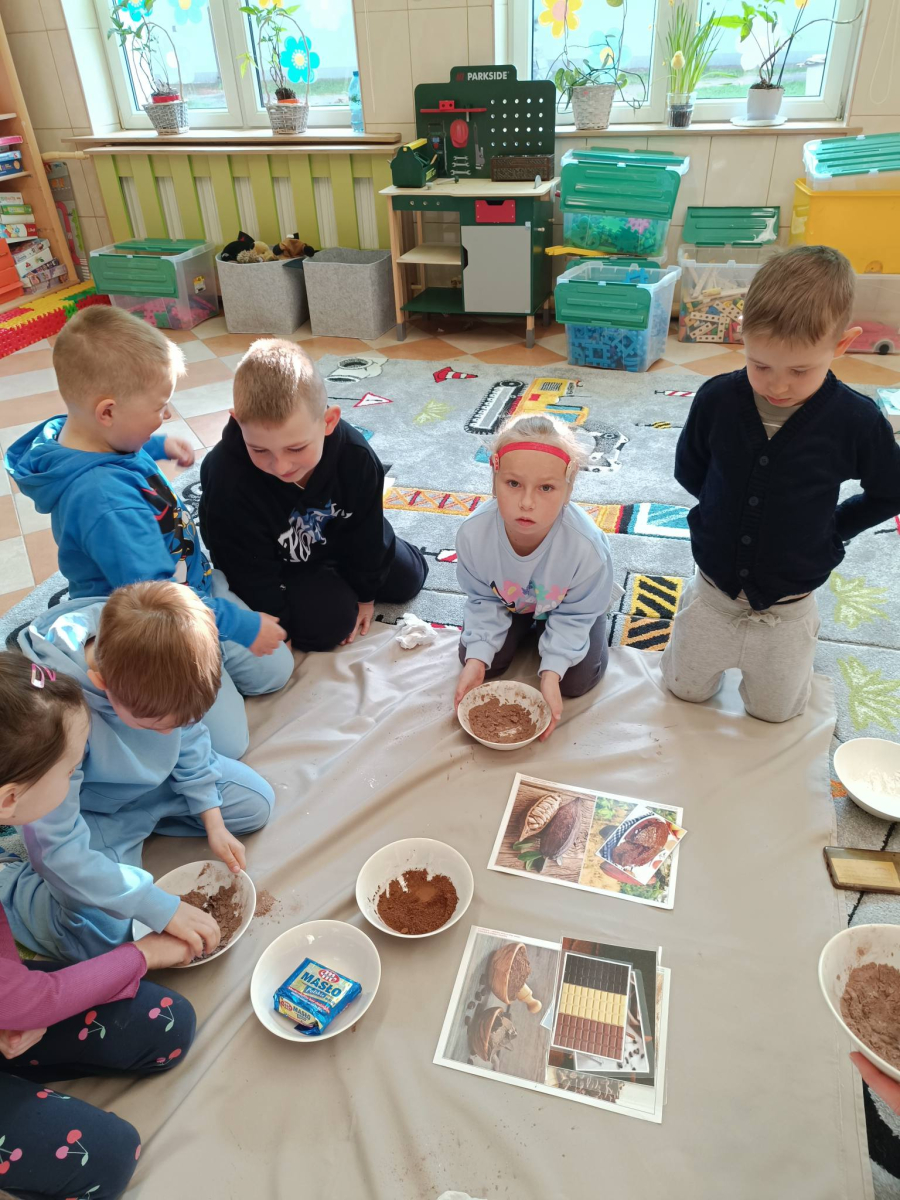 Starszaki dowiedziały się że...czekolada najpierw rośnie na drzewach, nasiona kakaowca wcale nie są słodkie, a słodyczy nie ma w piramidzie zdrowia.