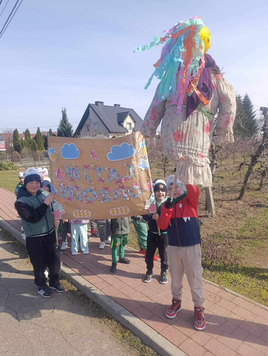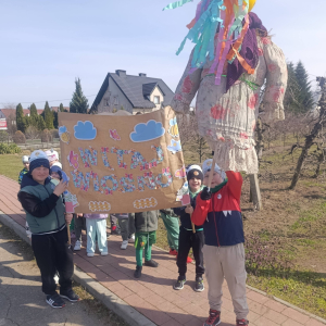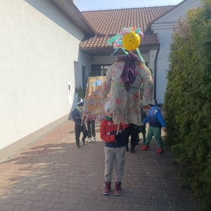 Dzieci wzięły udział w barwnym przemarszu po okolicy z własnoręcznie przygotowaną Marzanną oraz wiosennym transparentem, żegnając zimę i witając długo wyczekiwaną wiosnę.