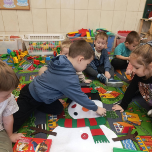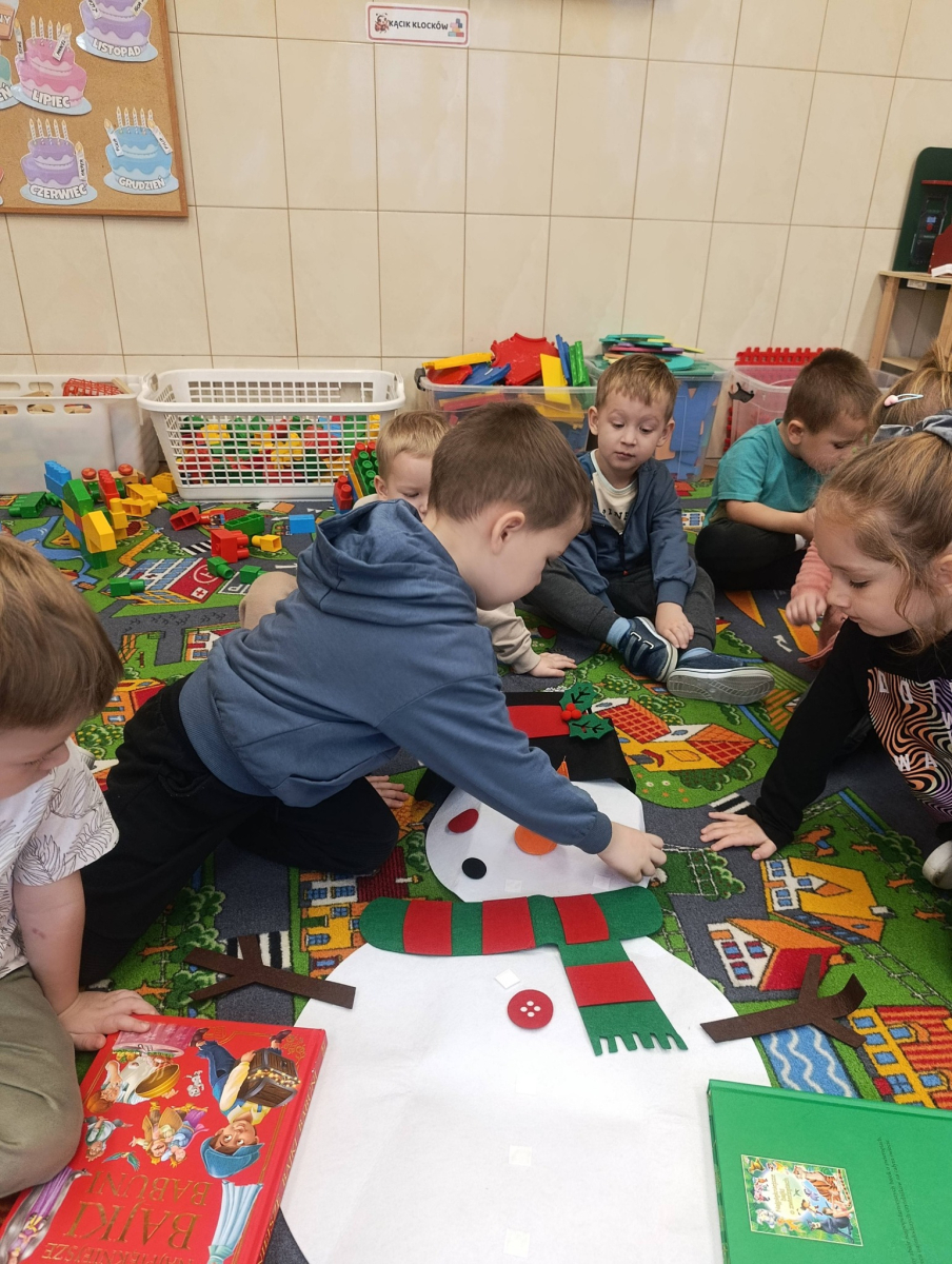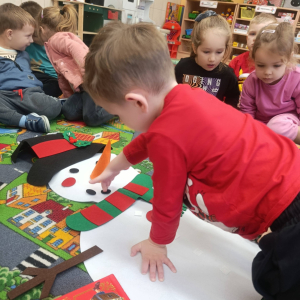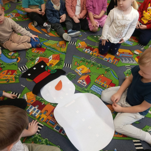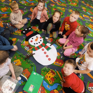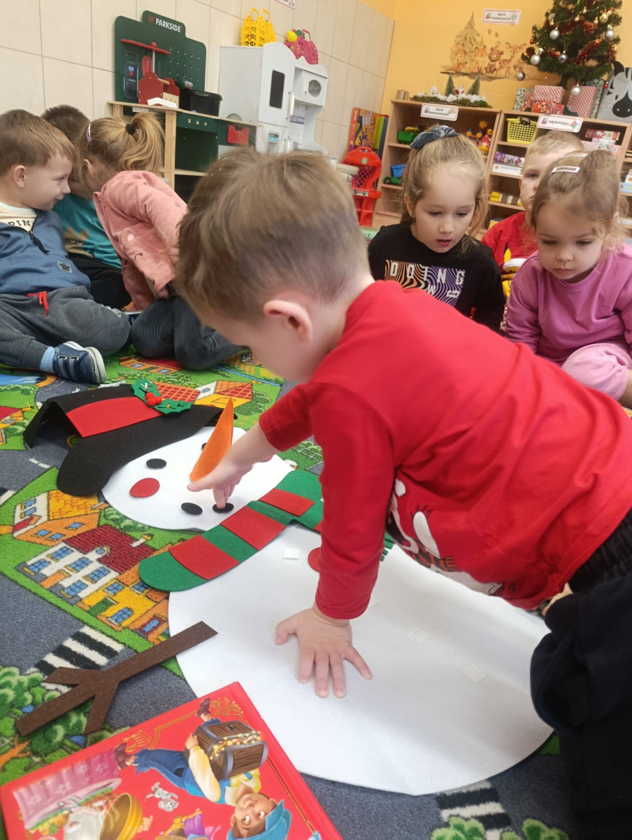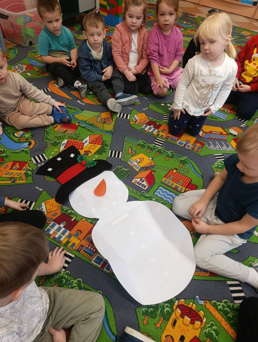 Dziś w przedszkolu powstał bałwan, który nie topnieje nawet przy kaloryferze.