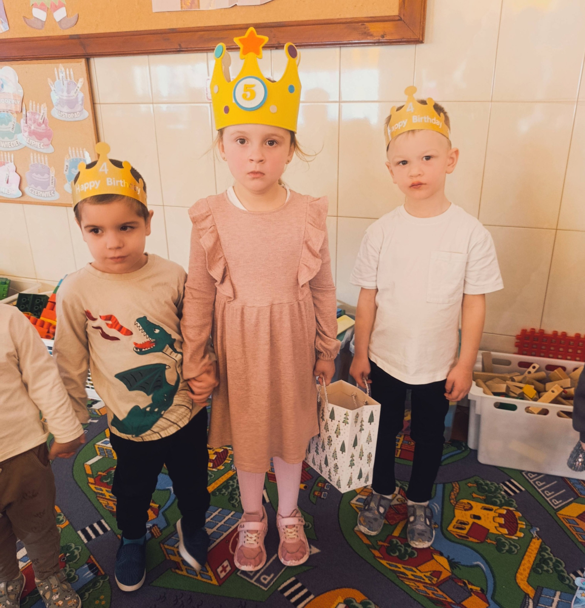 Były tańce, urodzinowe „Sto lat”, mnóstwo uśmiechów oraz pyszny poczęstunek. Nasi solenizanci dzielnie przyjmowali życzenia i z dumą nosili urodzinowe korony.