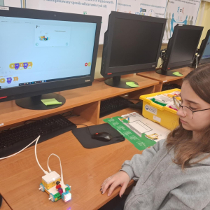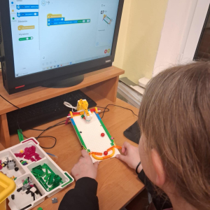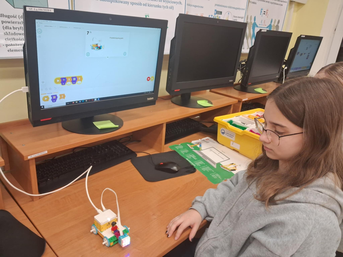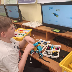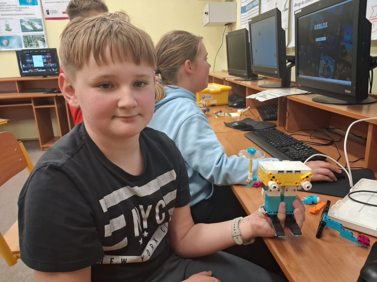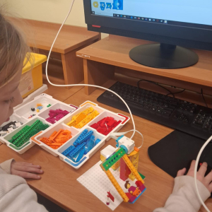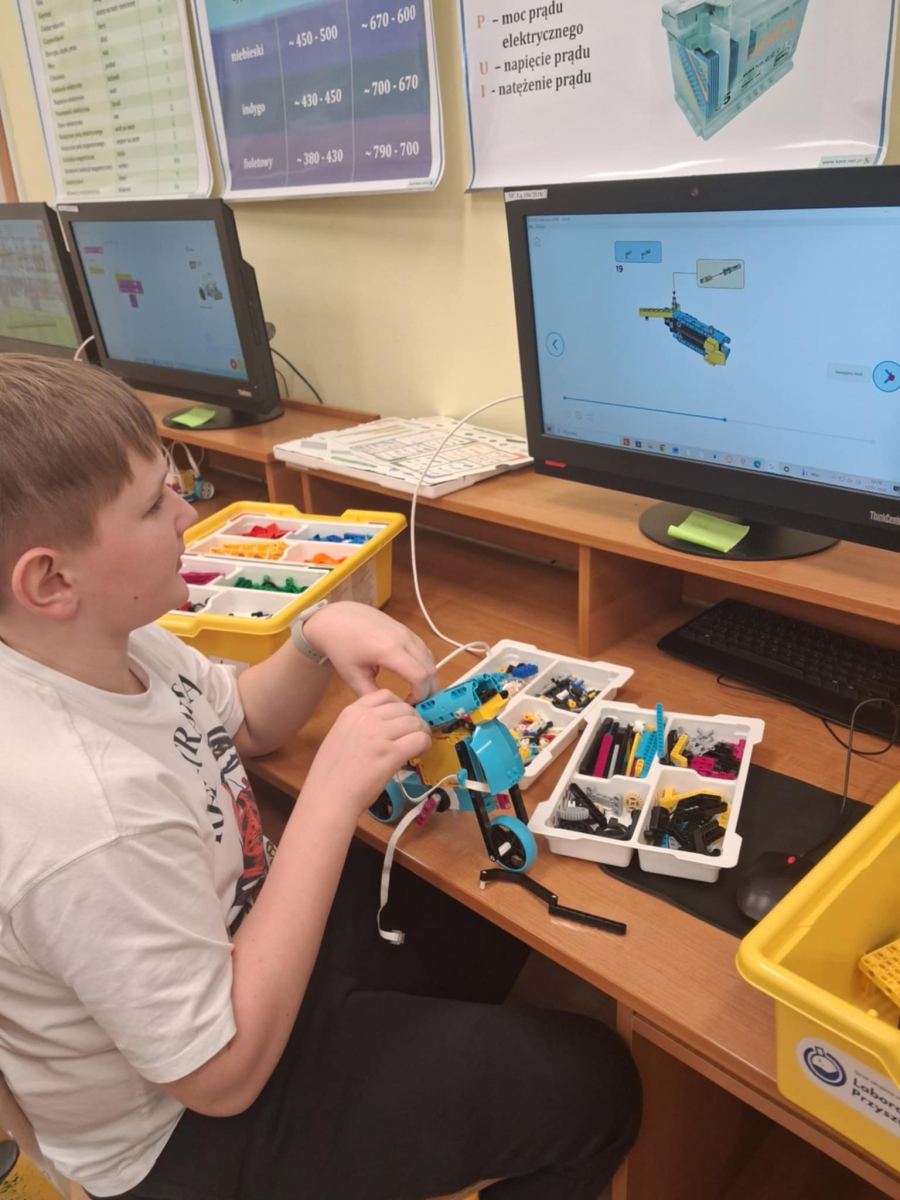Największym zainteresowaniem cieszą się zajęcia z wykorzystaniem zestawów Lego Spike. Uczniowie szczególnie lubią tę formę pracy, ponieważ mogą w prosty sposób zobaczyć efekty swoich działań – od zaprogramowania ruchu, po reakcje modeli na różne polecenia. Praca z klockami rozwija logiczne myślenie, kreatywność oraz umiejętność rozwiązywania problemów.